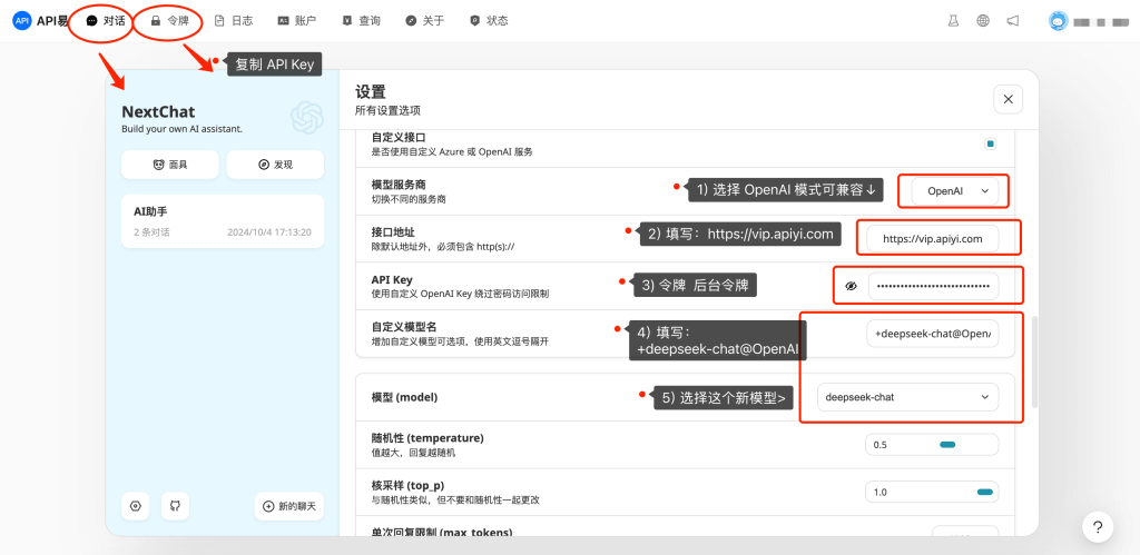 2)直接在 API 易站内使用 对话