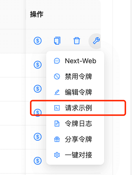 点击 API易 后台令牌,令牌最右侧的更多菜单里,有个:代码示例的入口。