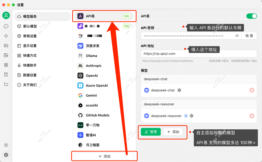提示:Cherry Studio 支持 OpenAI 兼容接口,API易 采用标准的 OpenAI 兼容模式,可以完美对接。
